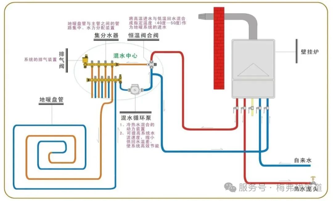 ①分集水器:分派热水到各回路